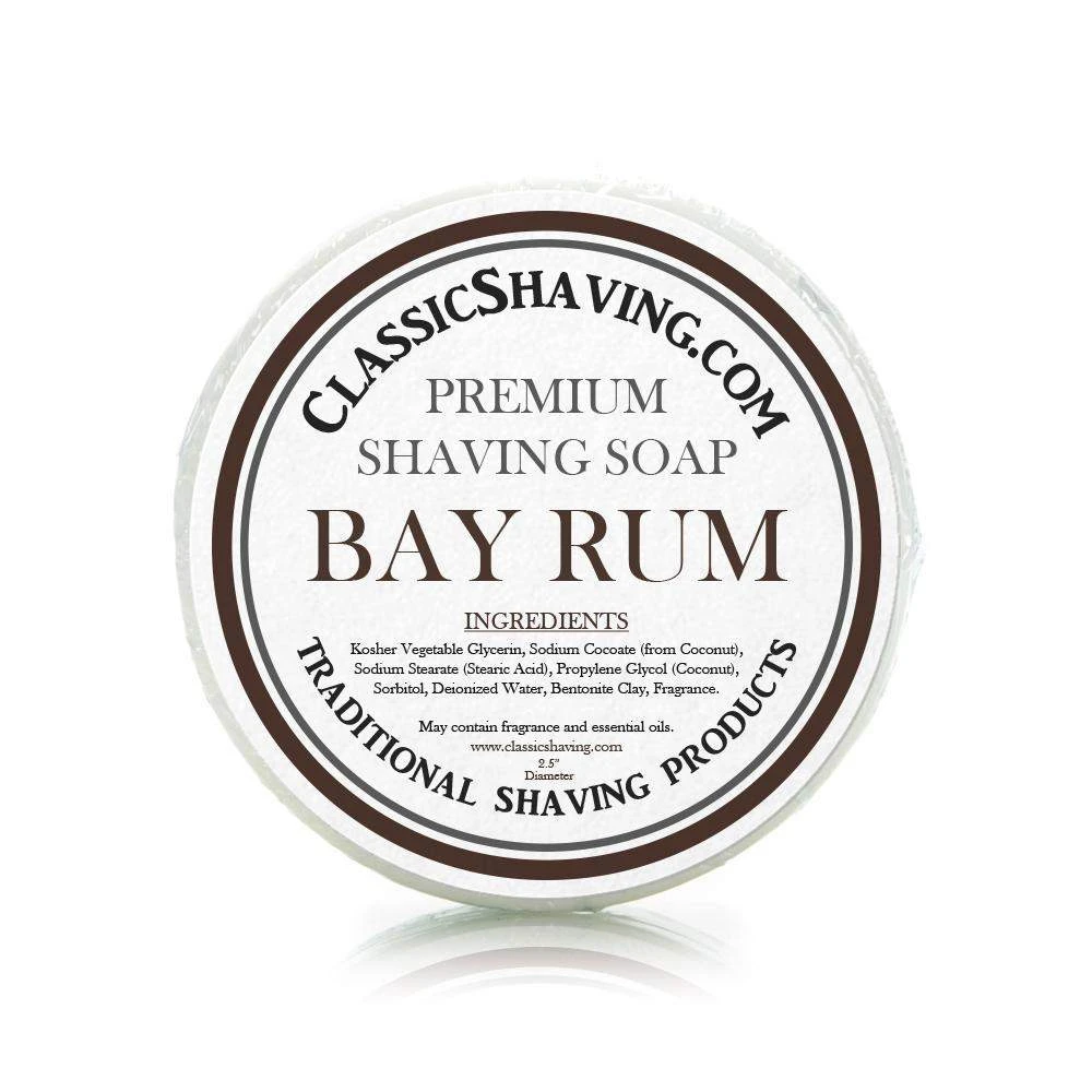 Classic Brand, Traditional Shaving Products, (2.5″ Diameter) Bay Rum Shave Soap Cake/Puck.