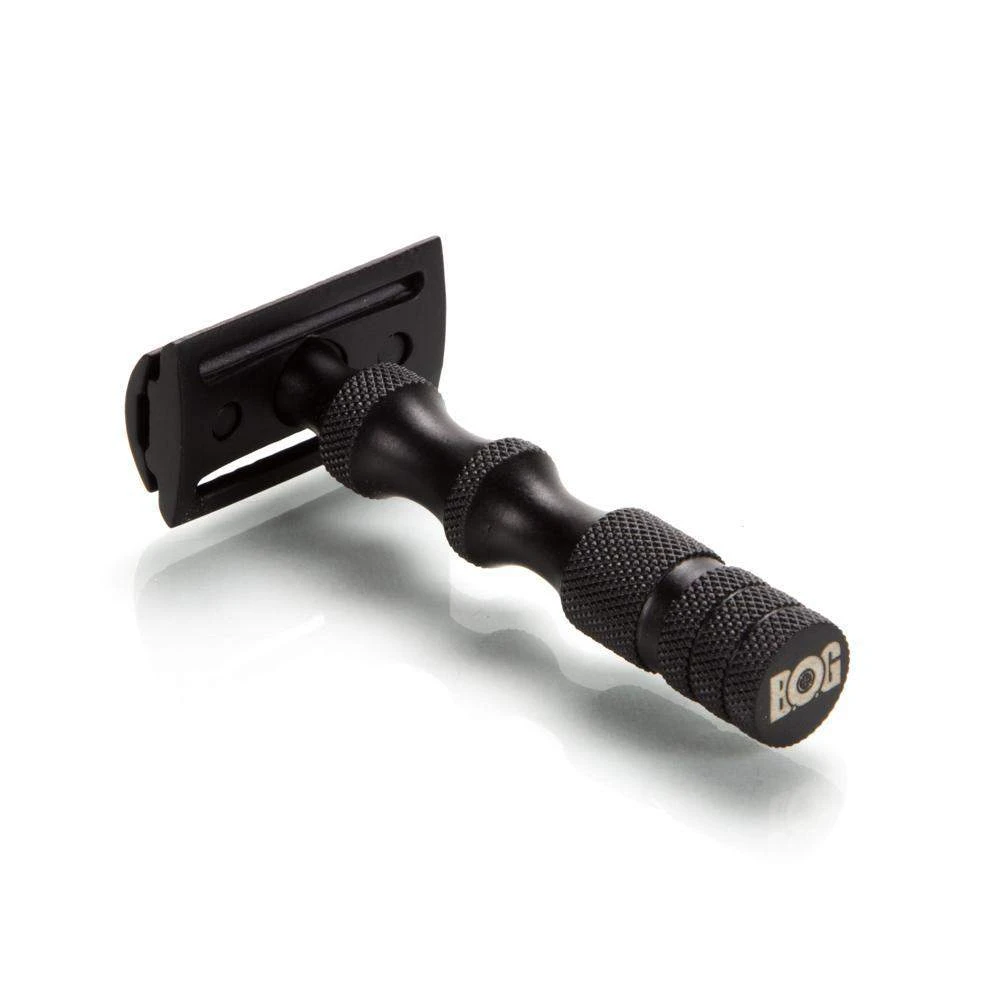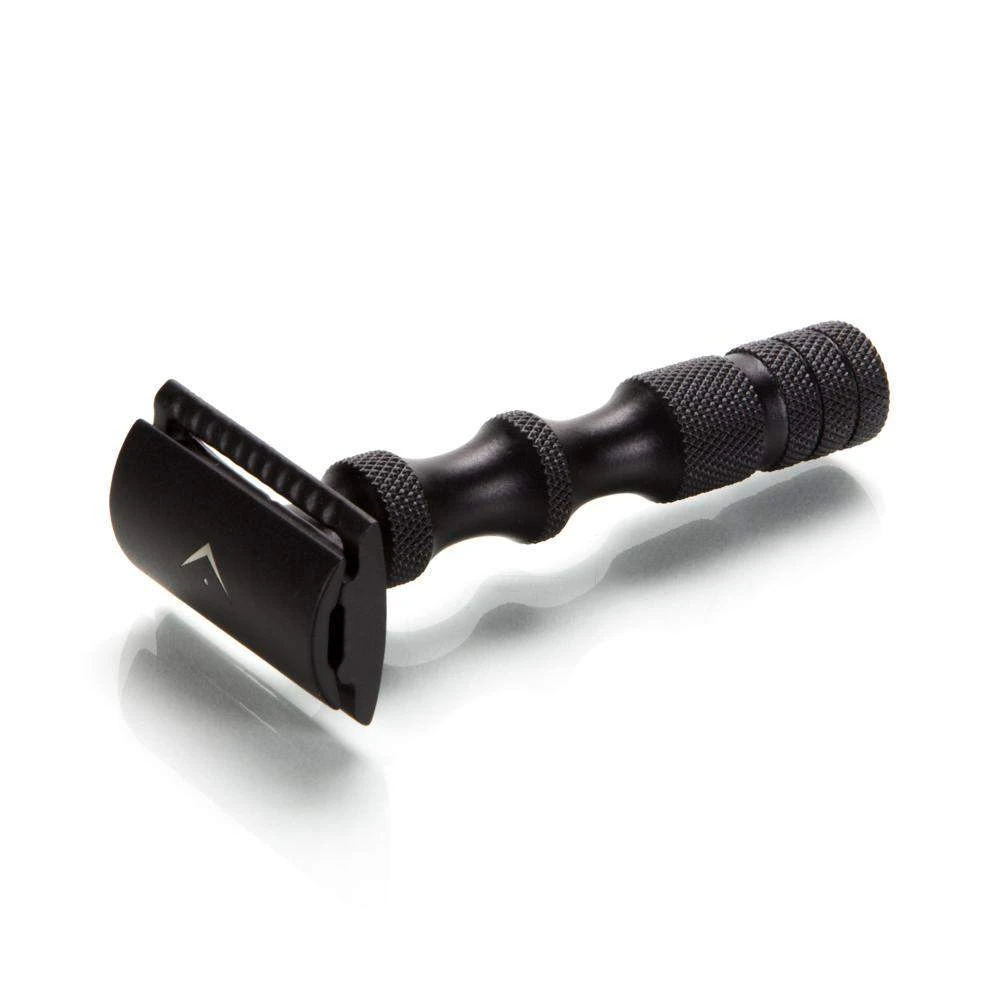 This safety razor is short in length, but not in performance or style. The knurls give you a great grip on the razor, and many people prefer maneuvering a shorter razor. It also includes a simple no-nonsense black storage box.