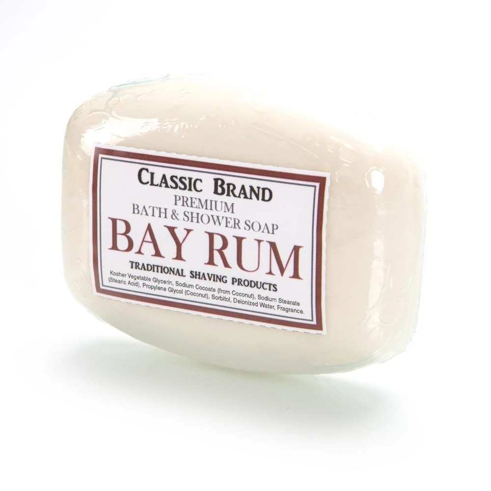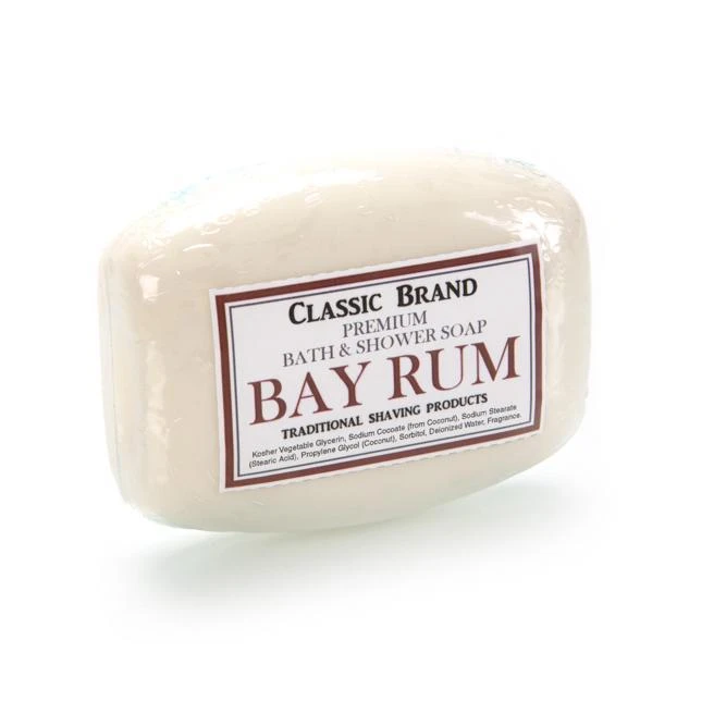 Our Classic Bay Rum Scented Soap incorporates natural essential oils imported from the tropical Caribbean islands. The Bay Rum scent of our bath and shower soap is an exact match to our bay rum shaving soap, aftershave lotions, and colognes to prevent scent clashing.