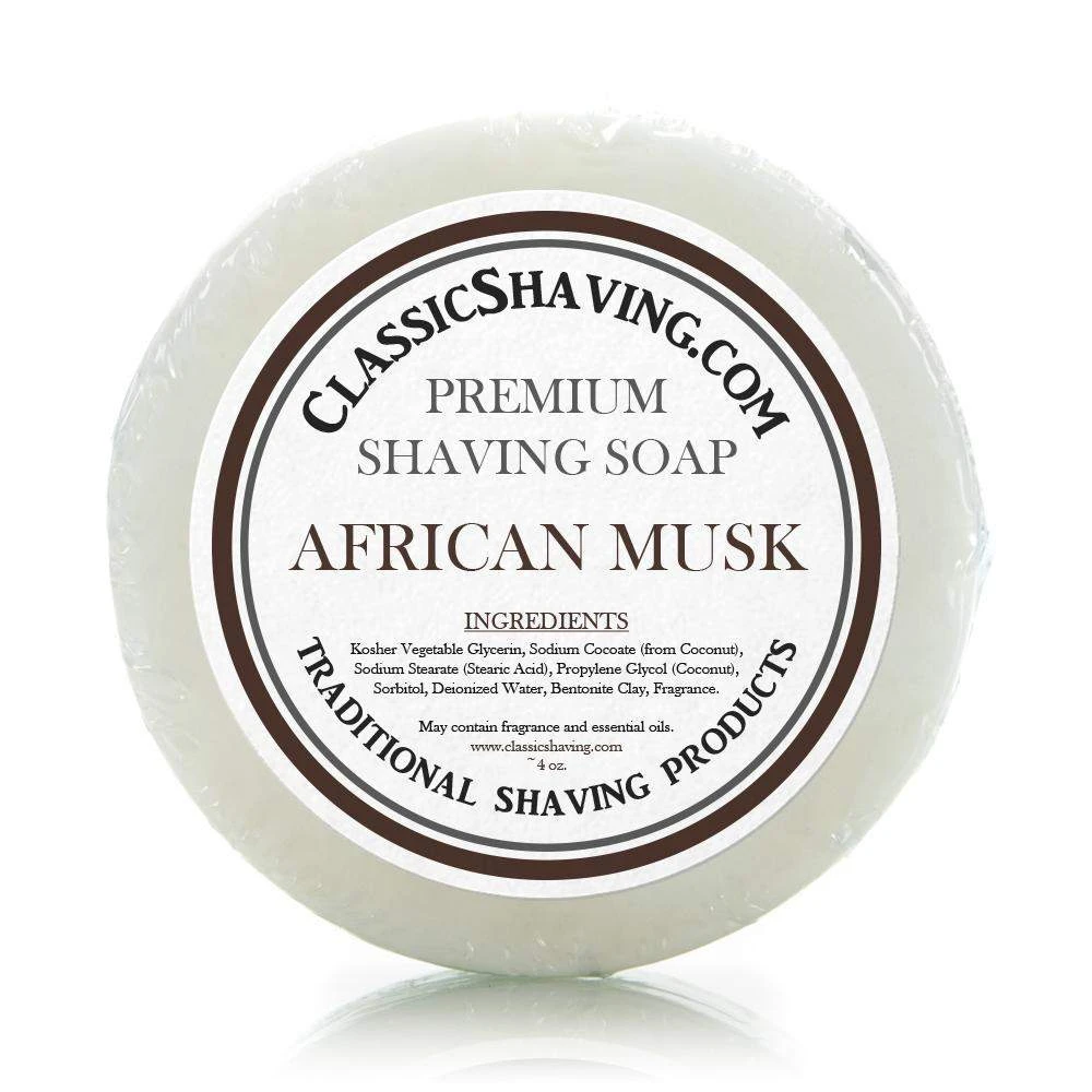 Classic Brand, Traditional Shaving Products, Large Size (3″ diameter) African Musk Shave Soap Cake/Puck.