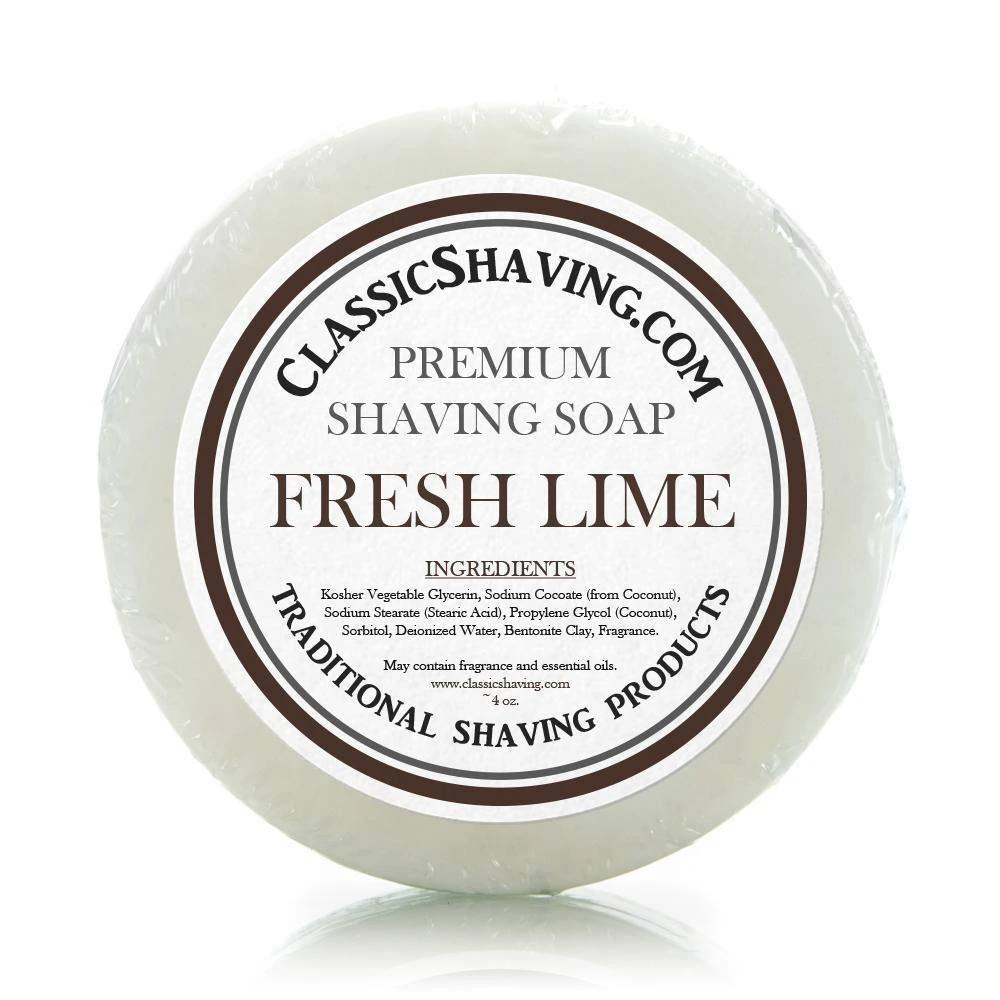 Classic Brand, Traditional Shaving Products, Large Size (3″ diameter) Fresh Lime Shave Soap Cake/Puck.