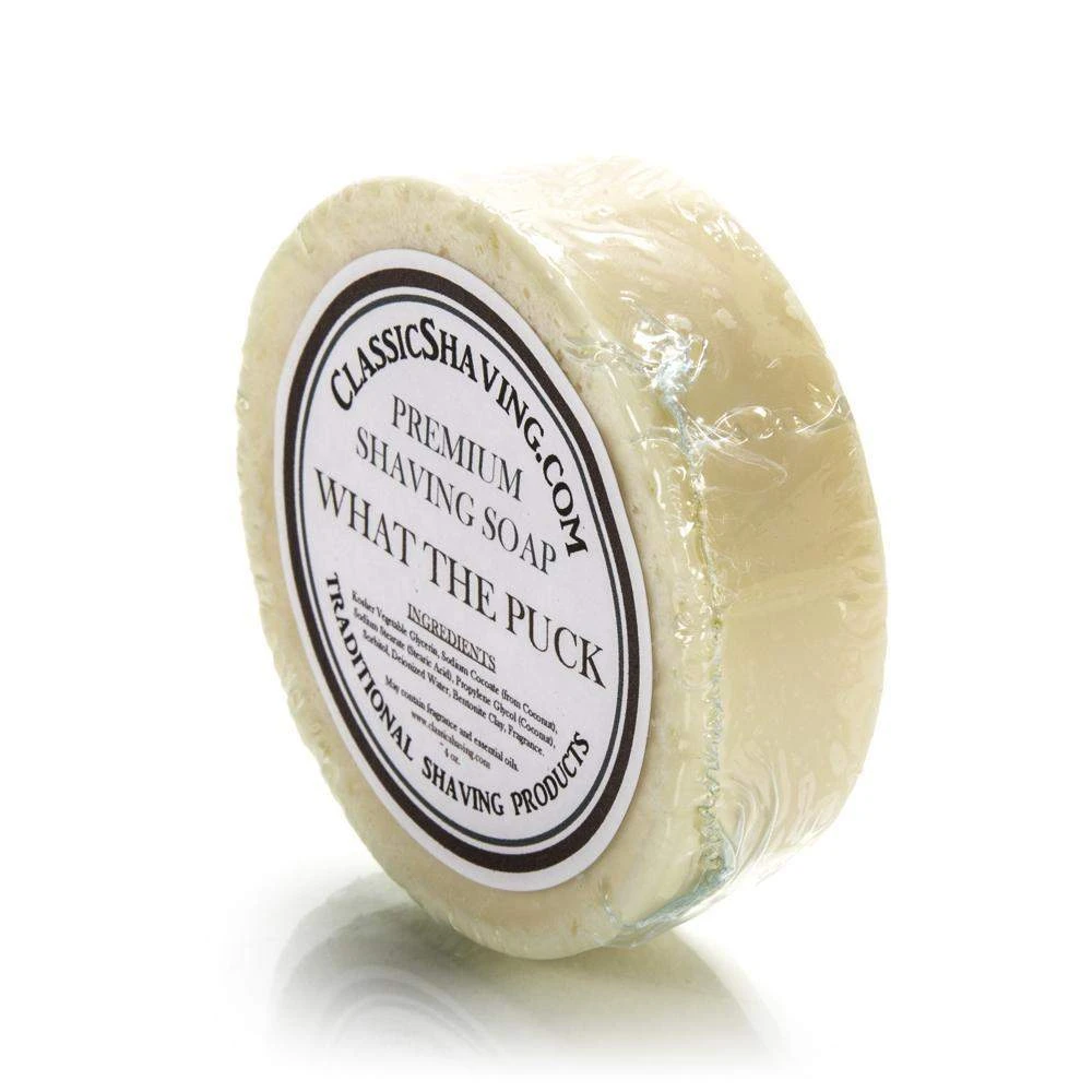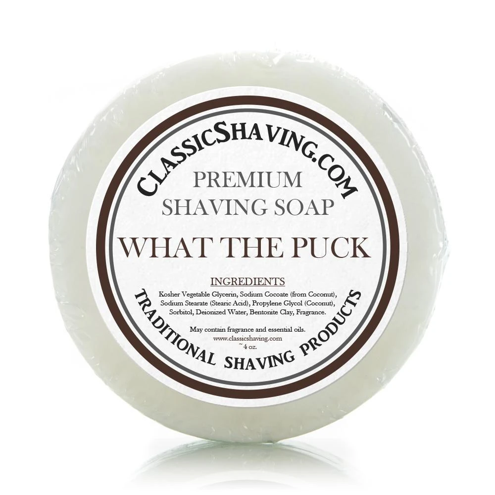 This is our “What The Puck” shave soap. This shaving soap is made with all of the leftover soap from every batch we pour. Which means the scent is a little bit of everything! The scent turned out a lot better than we thought it might, and we believe that you will like it as well.