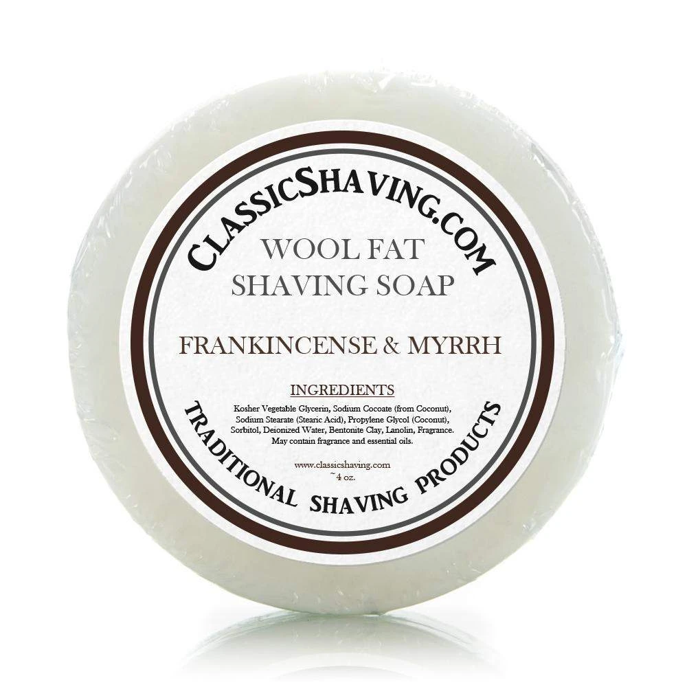We’re confident that once you’ve used “Classic Brand” Frankincense & Myrrh Wool Fat Shaving Soap you will not want to use any other brand. We have been dreaming of a Wool Fat Shaving Soap ever since we read of the benefits of lanolin in skin care and we knew our soap maker in beautiful Northern Idaho was up to the challenge. After much research, formula tweaking and testing, they came up with what we feel is a true gem. This soap is rich and it creates a lather, while not fluffy, is quite silky and your razor will glide across it giving you a nourishing and smooth shave. The 3″ diameter 4 ounce puck is quite dense and should last longer than an average shaving soap. Available in 32 unique scents.