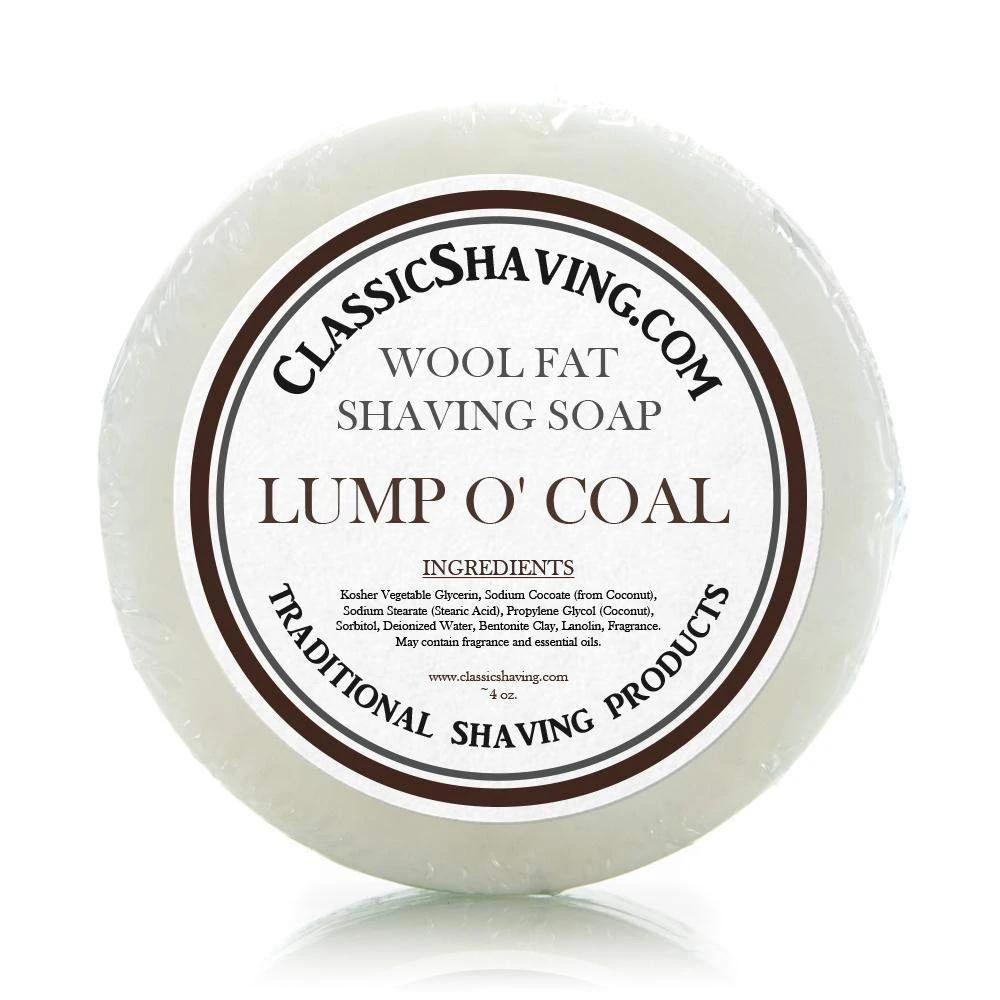 We’re confident that once you’ve used “Classic Brand” Lump o’ Coal Wool Fat Shaving Soap you will not want to use any other brand. We have been dreaming of a Wool Fat Shaving Soap ever since we read of the benefits of lanolin in skin care and we knew our soap maker in beautiful Northern Idaho was up to the challenge. After much research, formula tweaking and testing, they came up with what we feel is a true gem. This soap is rich and it creates a lather, while not fluffy, is quite silky and your razor will glide across it giving you a nourishing and smooth shave. The 3″ diameter 4 ounce puck is quite dense and should last longer than an average shaving soap. Available in 32 unique scents.