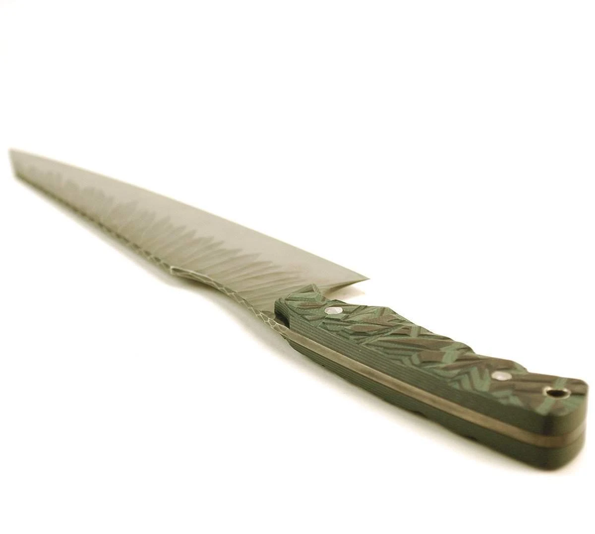 We’re proud to bring you our first chef’s knife from American bladesmith Dylan Farnham. This knife is really special. We’re all fairly certain that using it could delight and inspire anybody’s inner epicure. It’s sharper than imaginable and ready to work. Knife comes with a perfect bamboo custom storage box with magnetic closure and instructions for care and feeding of a blade. Lucky is the chef that brings this one home.