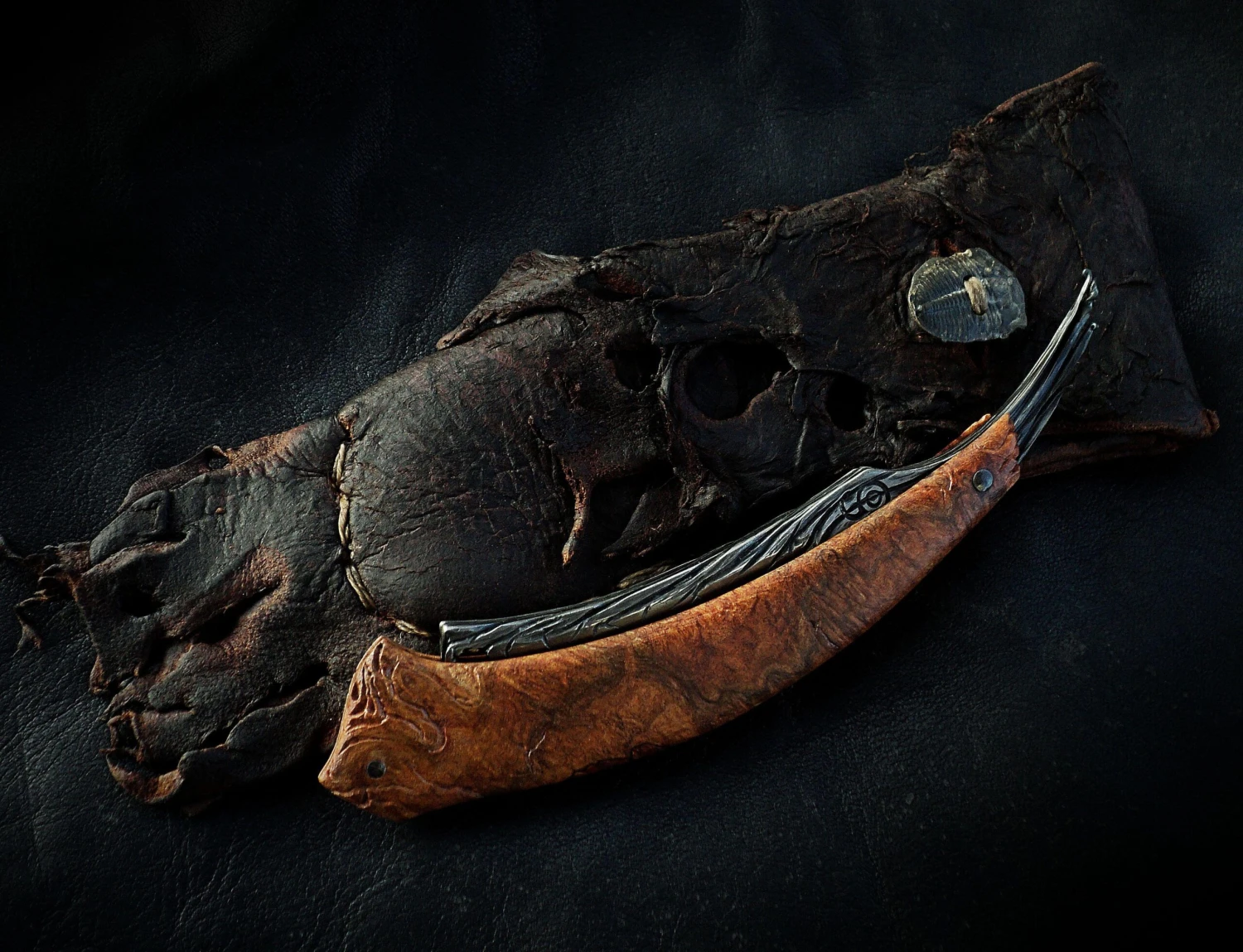 * - Elk Skin Sheath with Fossil Trilobite button
