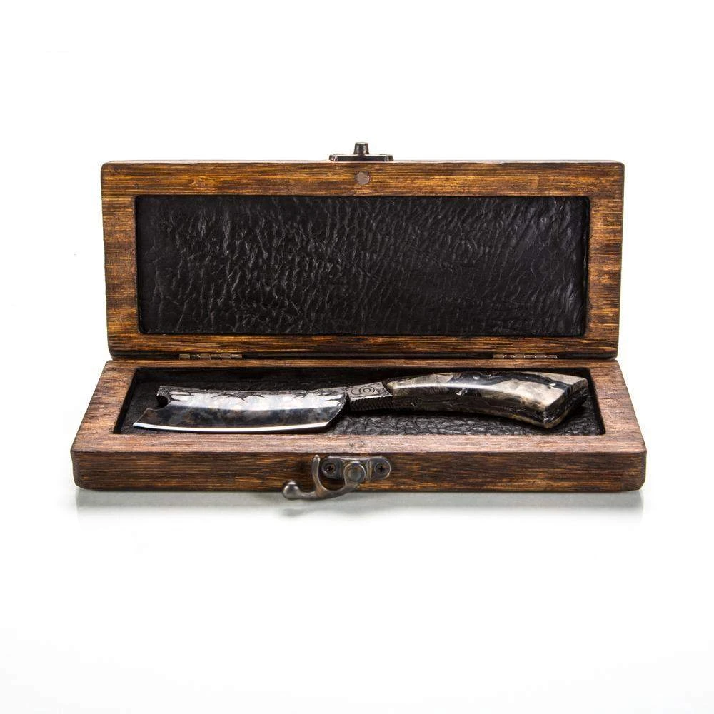 At Classic Shaving, we believe in using simple, high-quality tools that you only need to buy once and will last a lifetime. Dylan Farnham’s work delivers just that. From its hand-sculpted spine and scales to its crazy sharp hand-forged edge, this tool is usable art.