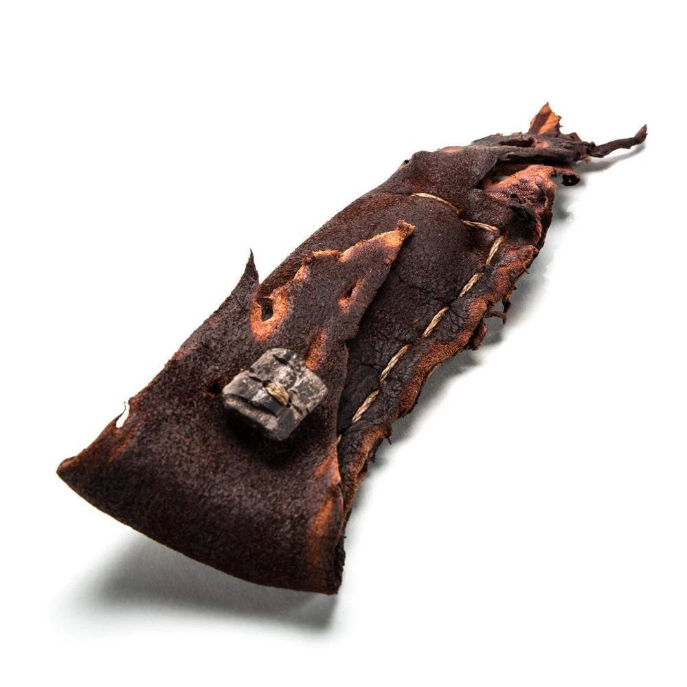 – Elk-skin sheath with petrified wood button