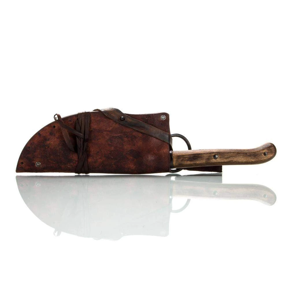 - Leather Sheath. Attaches to your belt, and ties around your thigh, for easy carry in any situation