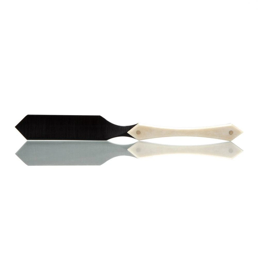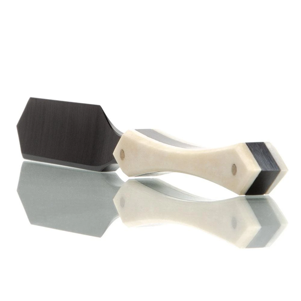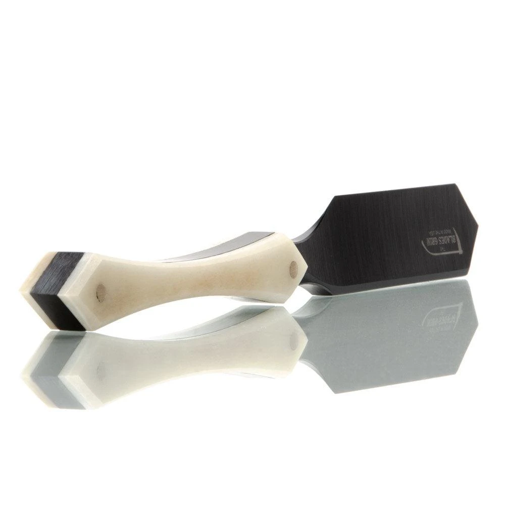 - A 6/8″ Kamisori Razor with Gun Bluing in Bone Scales