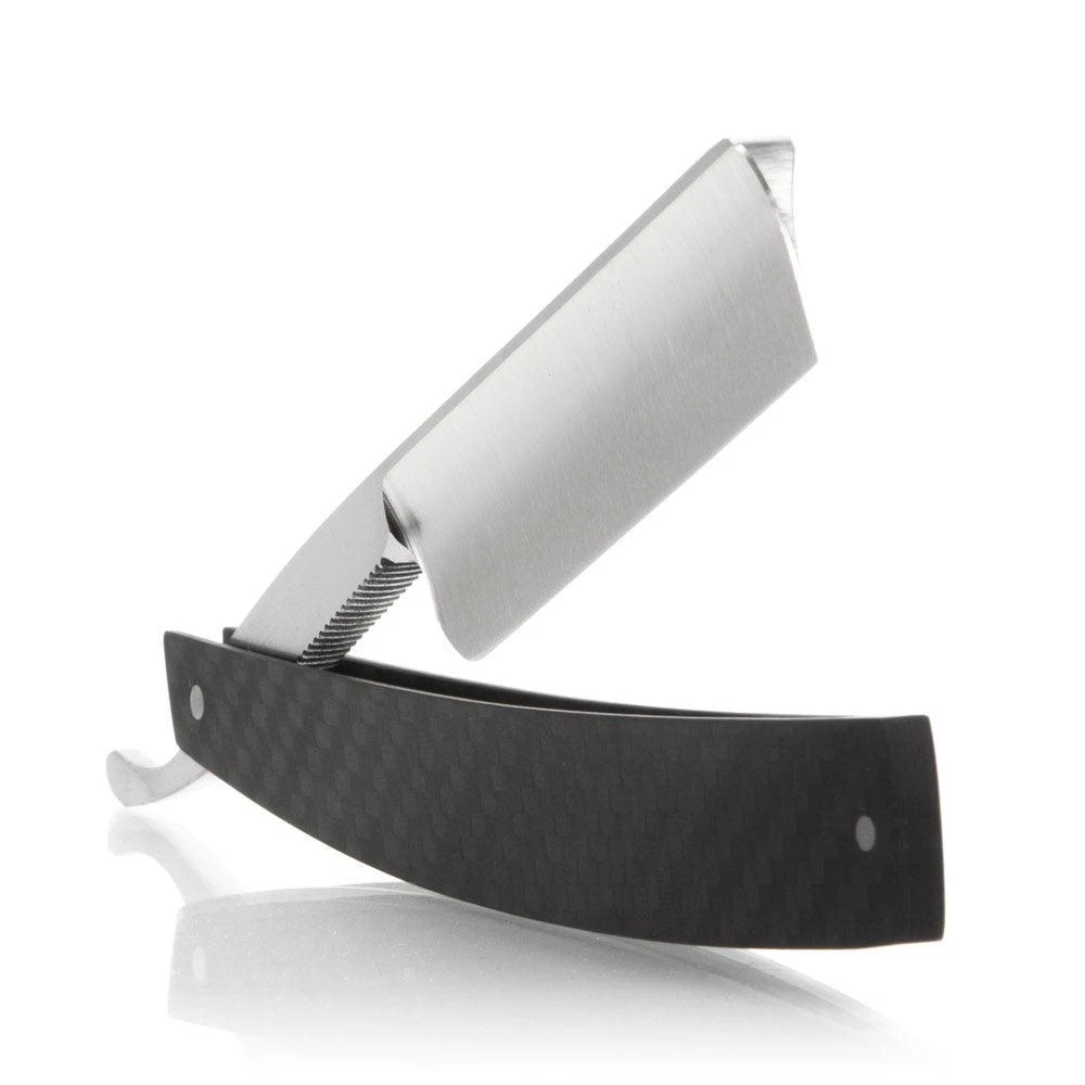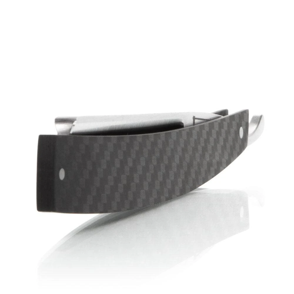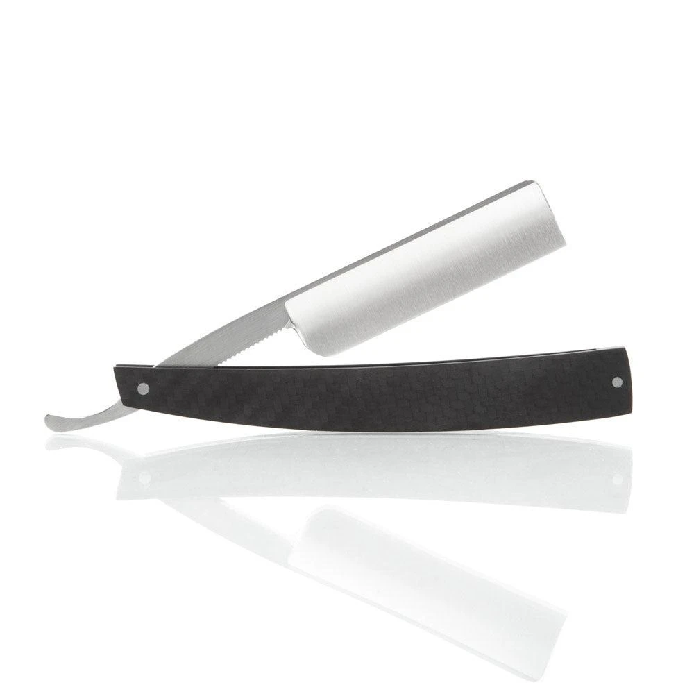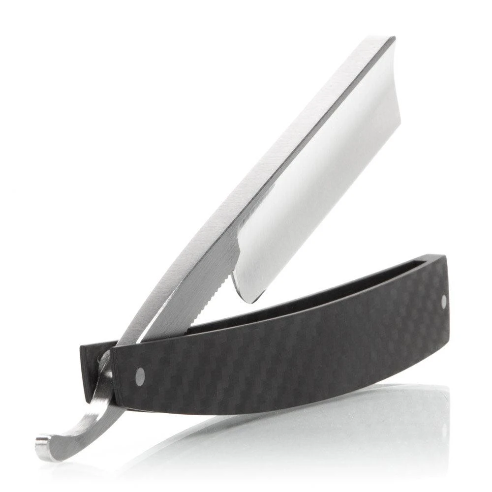 - A 6/8″ Square Tip Straight Razor with Carbon Fiber Scales