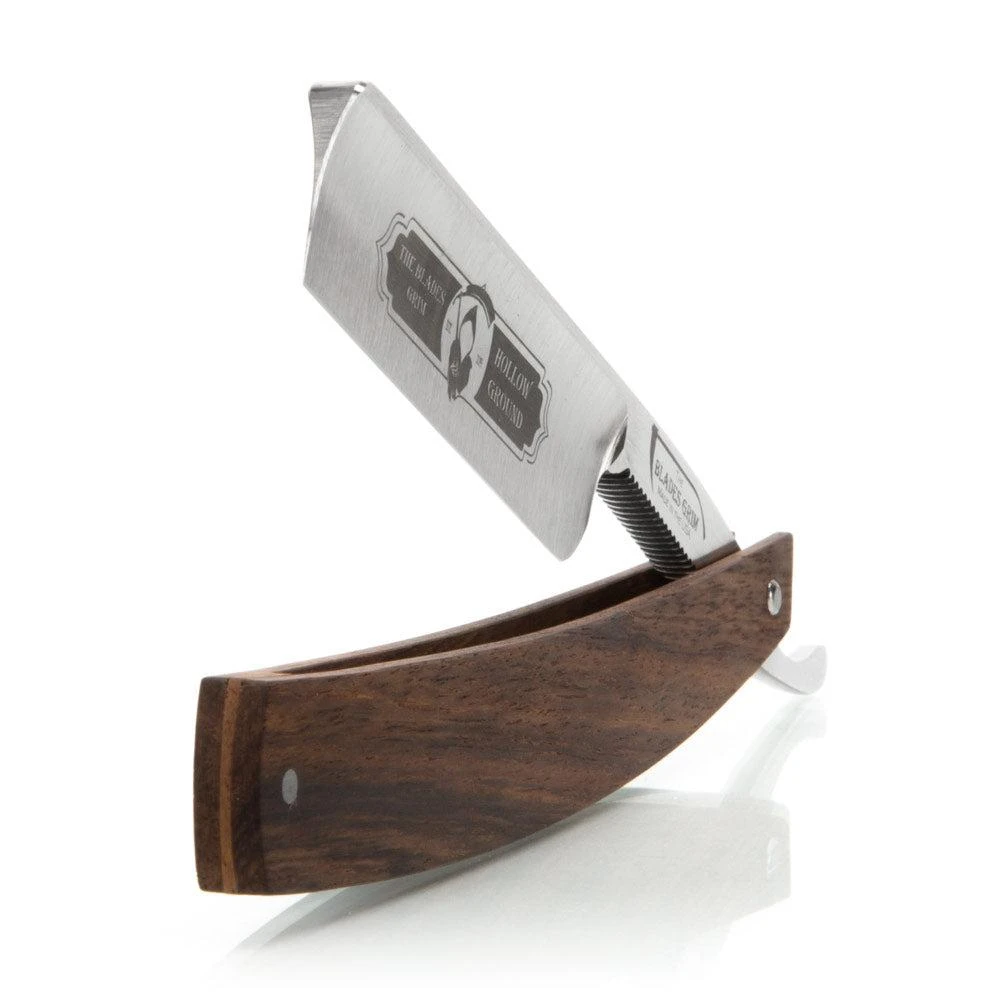 - A 6/8″ Square Tip Straight Razor with Exotic Rosewood Scales