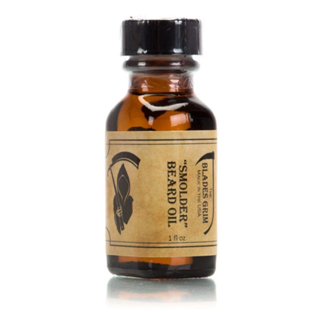 A 2 Pack of The Blades Grim – Beard Oil Scents: Smolder and Cinder each are 1 fluid oz (total of 2 fluid oz). Enjoy a luxurious beard oil with our Blades Grim Shaving Smolder and Cinder Beard Oil. This beard oil will help keep your beard healthy giving it a great shine, texture and smell. This specially crafted beard oil not only treats your beard but the skin underneath. This is the measure of a great beard oil (how well it cares for your skin as well). Just like the hair on your head, in order for healthy hair you need to treat the skin and hair follicle’s.