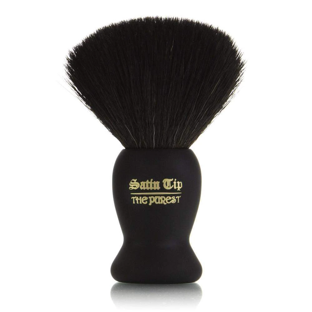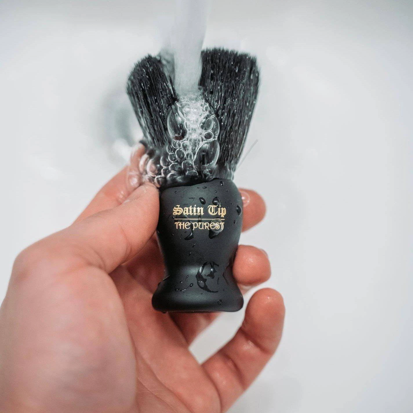 We bring you two of our most beloved products in one unbeatable combination. The Blades Grim 4 oz Luxury Shaving Soap “Smolder” Scent and The Satin Tip The Purest Black Synthetic Shaving Brush. These two items go hand in hand. For a long time we’ve offered them with other items in our kits. Now thanks to customer demand, we are offering them as their own combo. The Blades Grim Smolder Shaving Soap has been tough to keep on the shelf, it is highly praised for its rich lather, subtle yet masculine scent and overall comfort during the shave. The shaving soap comes in our gold screw top tin. Everything about this soap is luxurious and we want our customers to enjoy this with the finest synthetic brush on the market. The Satin Tip The Purest synthetic brush has garnered a lot of attention and for good reason. The quality and feel of the brush is hard to match, especially when price is considered, then it becomes unbeatable. You can also use your synthetic hair brush without guilt, knowing that no animals were harmed in the manufacture of the brush.