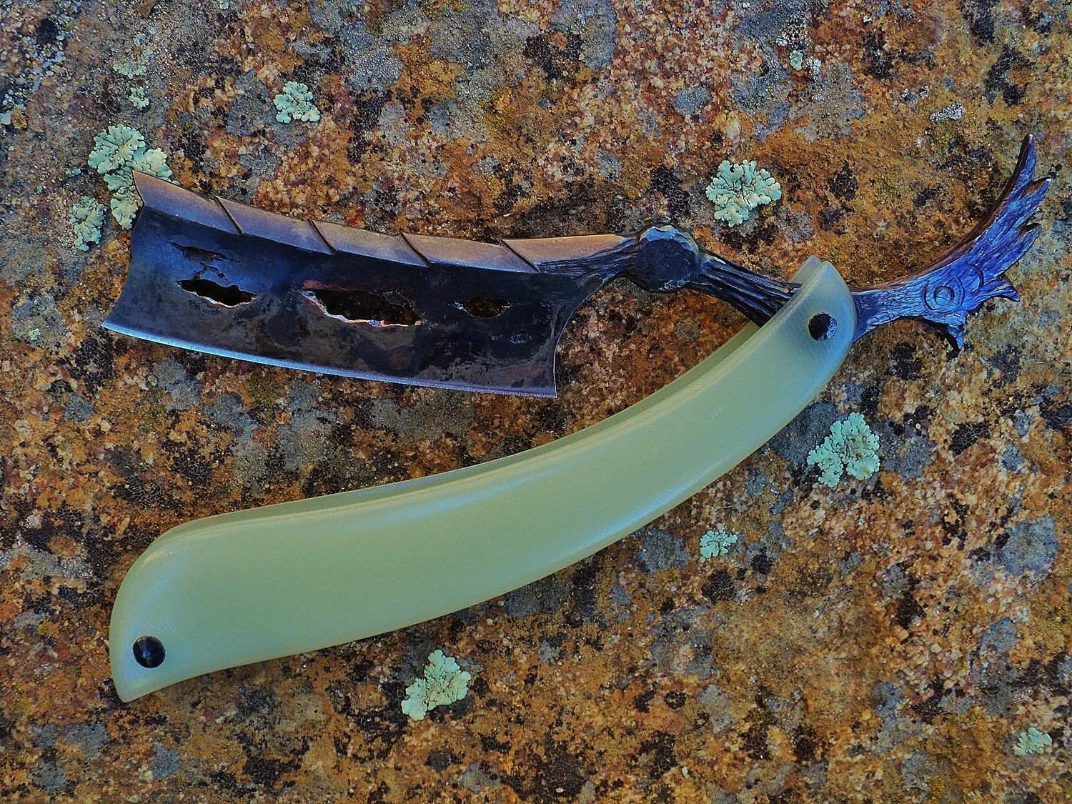 It’s funny who you’ll find literally in your backyard. In our case, it was a straight razor artisan who is ready to break onto the scene in a big way. Up in the mountains of Idyllwild, CA, Dylan Farnham has set up shop. Remember the name, because this guy is the real deal. Not only does he shave with his own straight razor every other day, but get this: when Dylan took a year off to motorbike through South America, he depended on three knives made by his own hand to see him through—a non-folding straight razor, a larger Bowie-esque camp knife, and a Kukri-like machete. All three (four if you count Dylan) returned as good as new and are still in use today. That’s a Dylan Farnham blade: a masterpiece of steel designed to do some serious work. Mixing rugged functionality with a sublime artist’s hand, Dylan’s straight razors are not only built to last for generations, they are aesthetically unlike any we have ever seen. Take a look for yourself. Check out his razors (and soon some of his knives) along with their technical specs on our website. We here at Classic Shaving couldn’t be more proud to welcome Dylan’s line of custom straight razors and knives to our collection. Those of you lucky enough to grab these inaugural razors… enjoy!