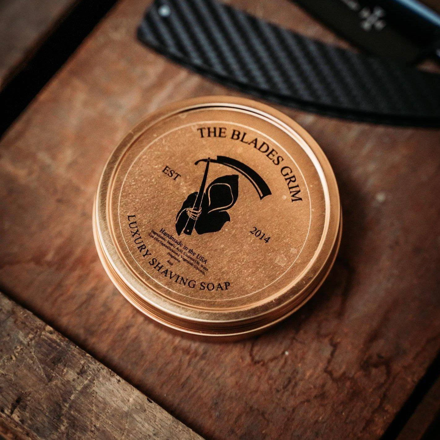 Enjoy a luxurious shaving experience with our Blades Grim Shaving Soap. This soap creates a nice thick lather in seconds, for a perfect glide with your razor for an ultimate experience and superior protection.