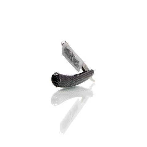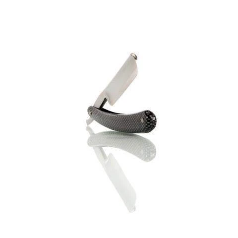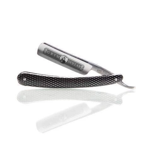 Perfect for beginners, or as a low-cost straight razor, this Grim Dollar razor has a 6/8″ round blade, with carbon fiber pattern scales. Shave-Ready out of the box!
